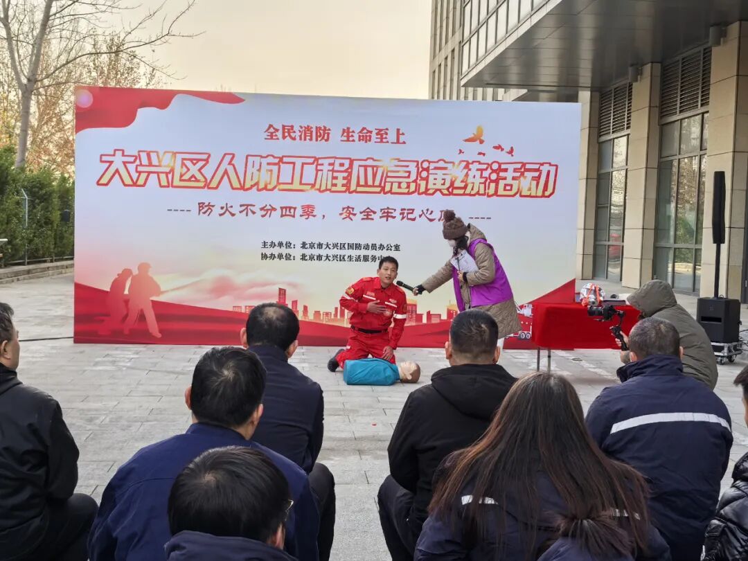 为深入开展2025年大兴区“消防宣传月”活动,提升人防工程消防安全应急处置能力,结合活动主题“全民消防、生命至上——安全用火用电”,2025年11月28日,大兴区国防动员办公室联合罗奇营社区居委会、北京联港物业管理有限责任公司在大兴区文新南街275号楼人防汽车库组织开展人防工程应急演练。